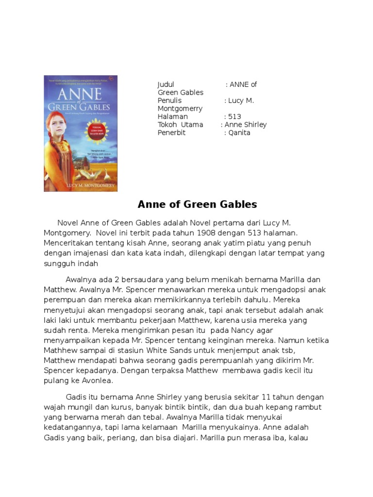The canadian classic anne of green gables written by lucy maud montgomery in 1908 is one of the worksof literature where a pedagogy has been developed to further these aims. Anne of Green Gables Book Pdf Free Download. Was reputed to be an intricate headlong brook in its earlier.